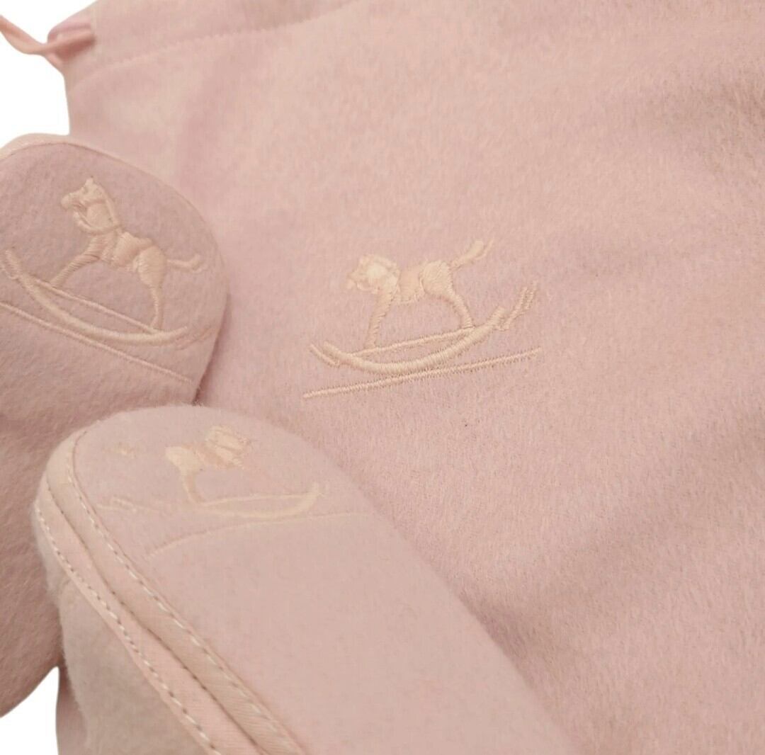 HERMES Baby First Shoes – Wool Angora, Embroidered Logo, Pink – Box & Dust Bag – Pre-owned / エルメス ベビー ファーストシューズ 刺繍ロゴ ウール アンゴラ ピンク 箱・巾着付き USED
