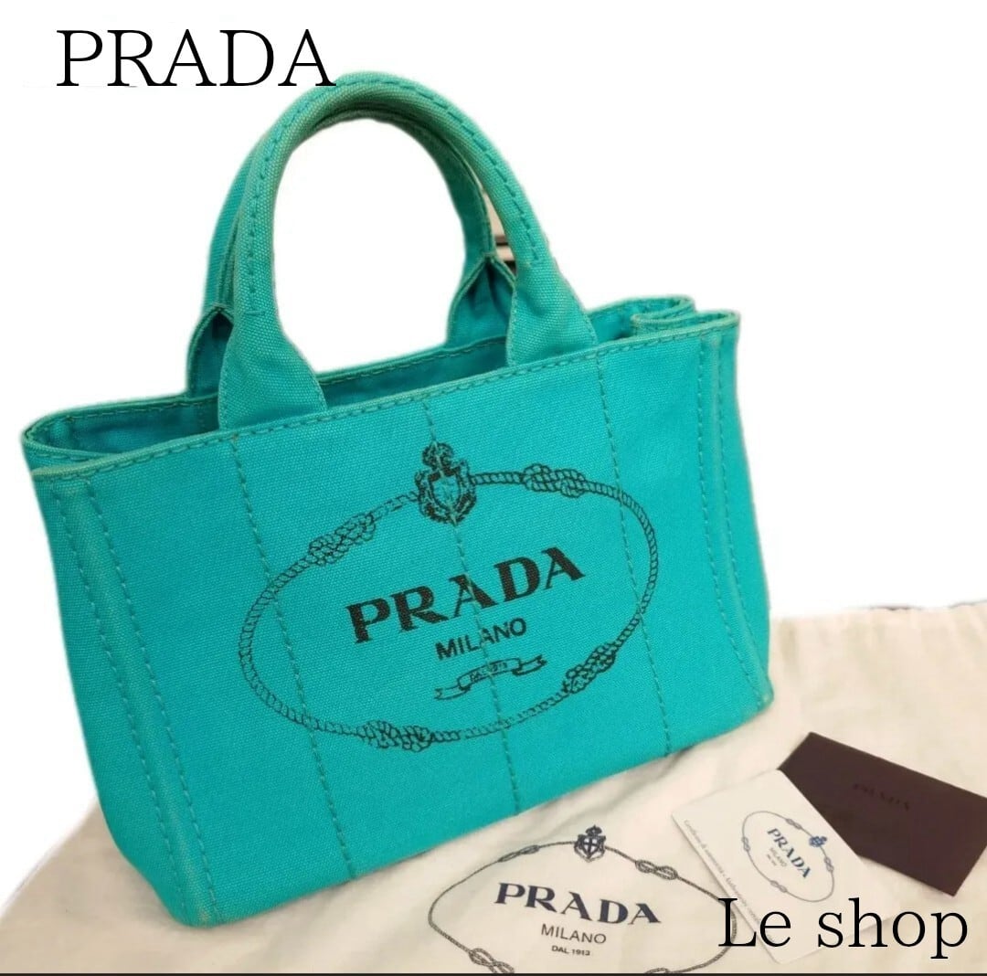 【希少カラー☆】PRADA プラダ CANAPA カナパ トート ハンドバッグ キャンバス pavone レディース BN2439 カード付 USED品