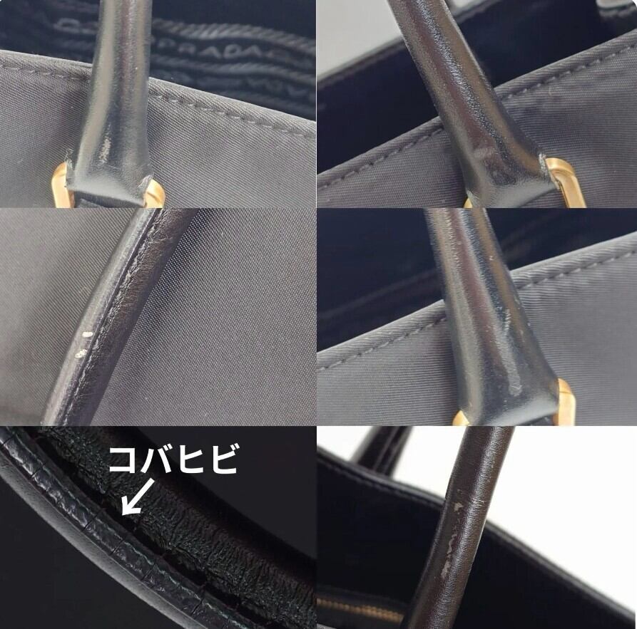 写真8枚目持ち手上部4枚はスレ等がわかりやすく光をとばしてるため色褪せてみえますが実物は色褪せじたいはございません。