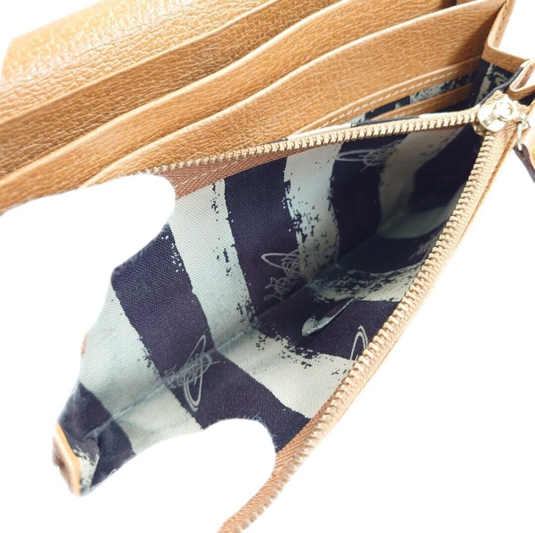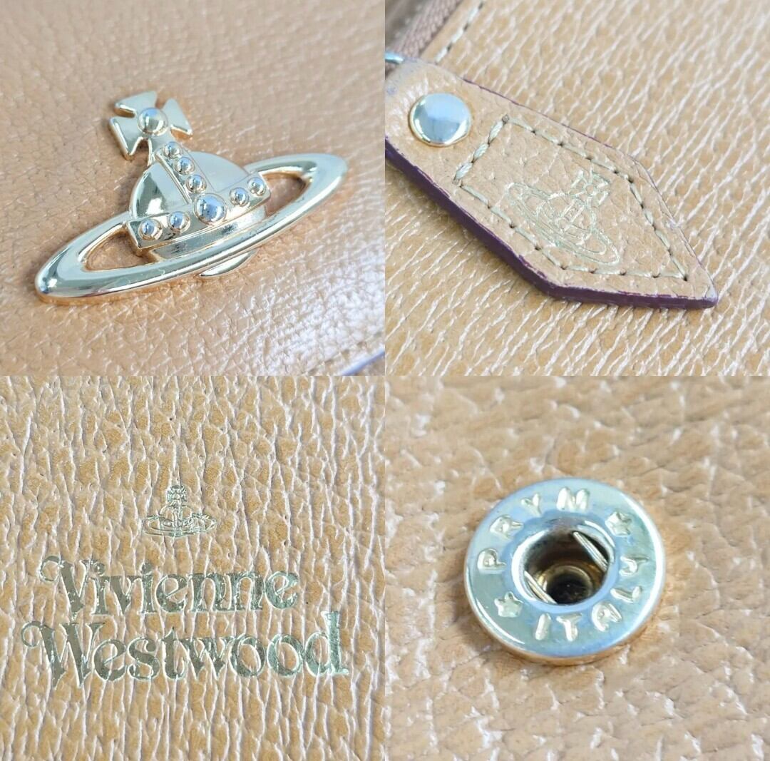 Vivienne Westwood ヴィヴィアンウエストウッド 長財布 二つ折り財布 オーブ 牛革 レザー ゴールドロゴ 大容量 キャメル USED品