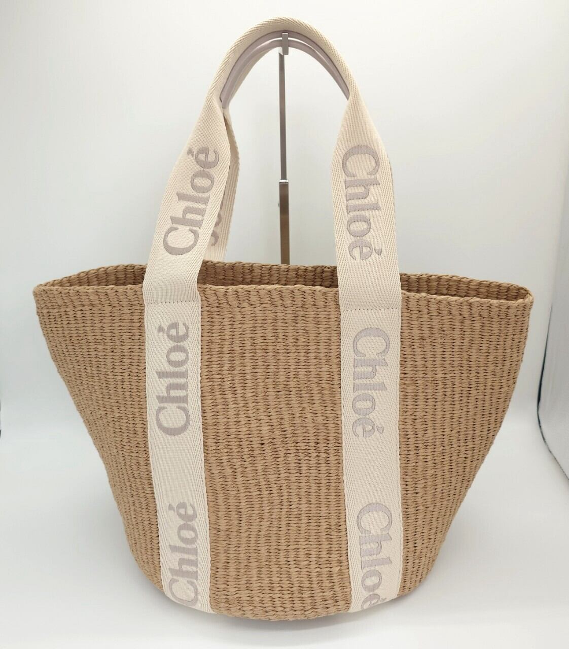 《美品 / Excellent》Chloé クロエ WOODY ラージバスケットバッグ トート かごバッグ レディース Wild Grey 保存袋付 / Basket Tote Bag for Women Used