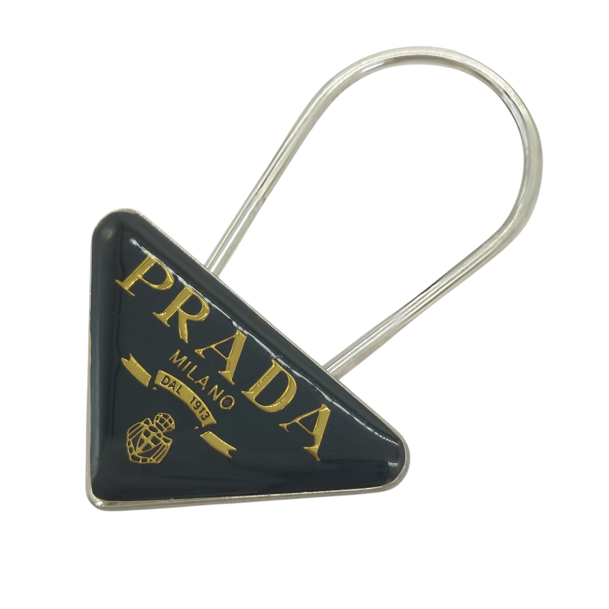 PRADA プラダ キーリング キーホルダー 三角プレート ブラック シルバー ユニセックス USED品