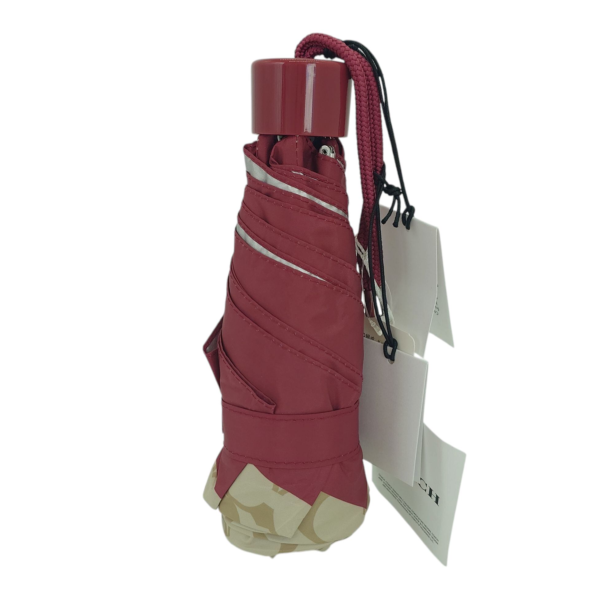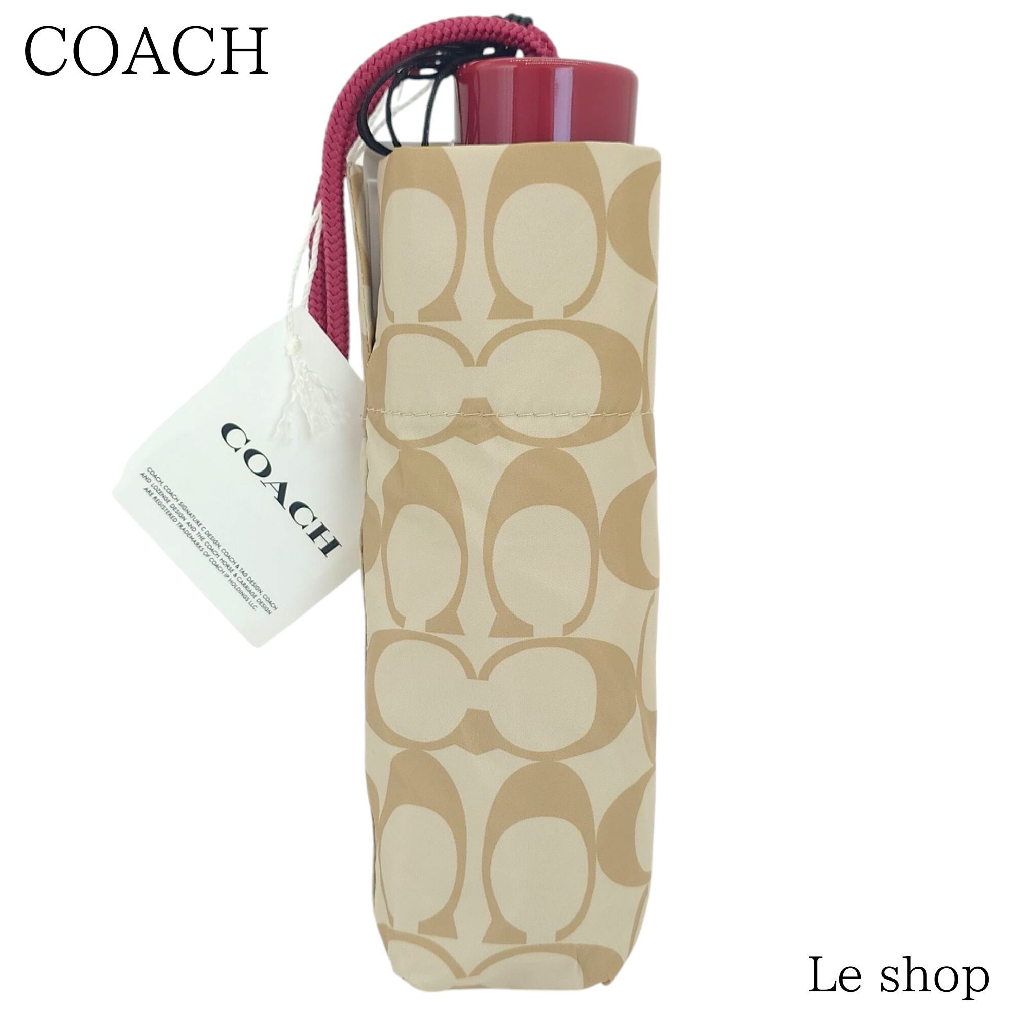 【タグ付き】COACH コーチ 折りたたみ傘 晴雨兼用 日傘 UVカット シグネチャー ライトカーキ ルージュ レディース USED品