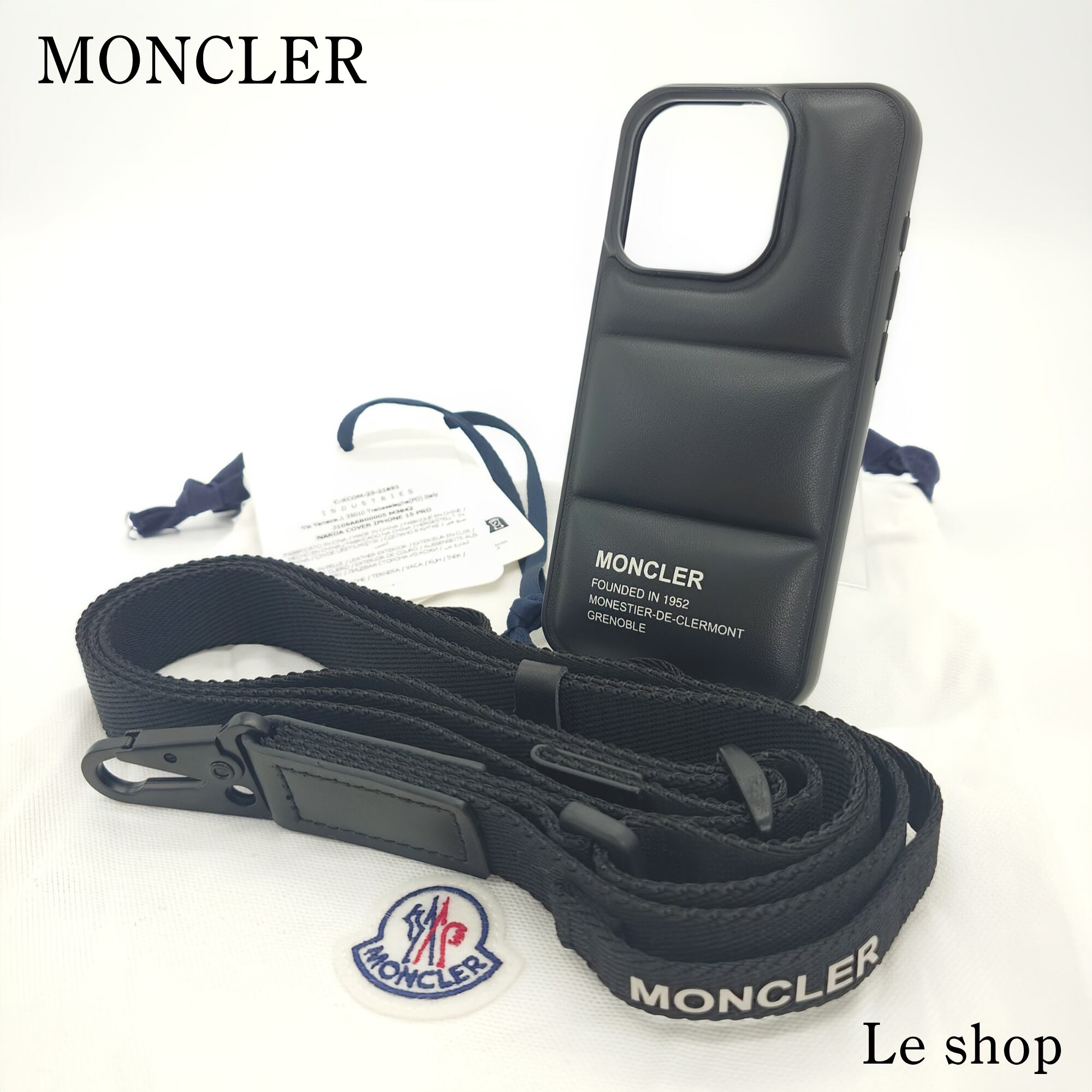 A sleek and luxurious MONCLER iPhone 15 Pro case, designed with both style and function in mind.