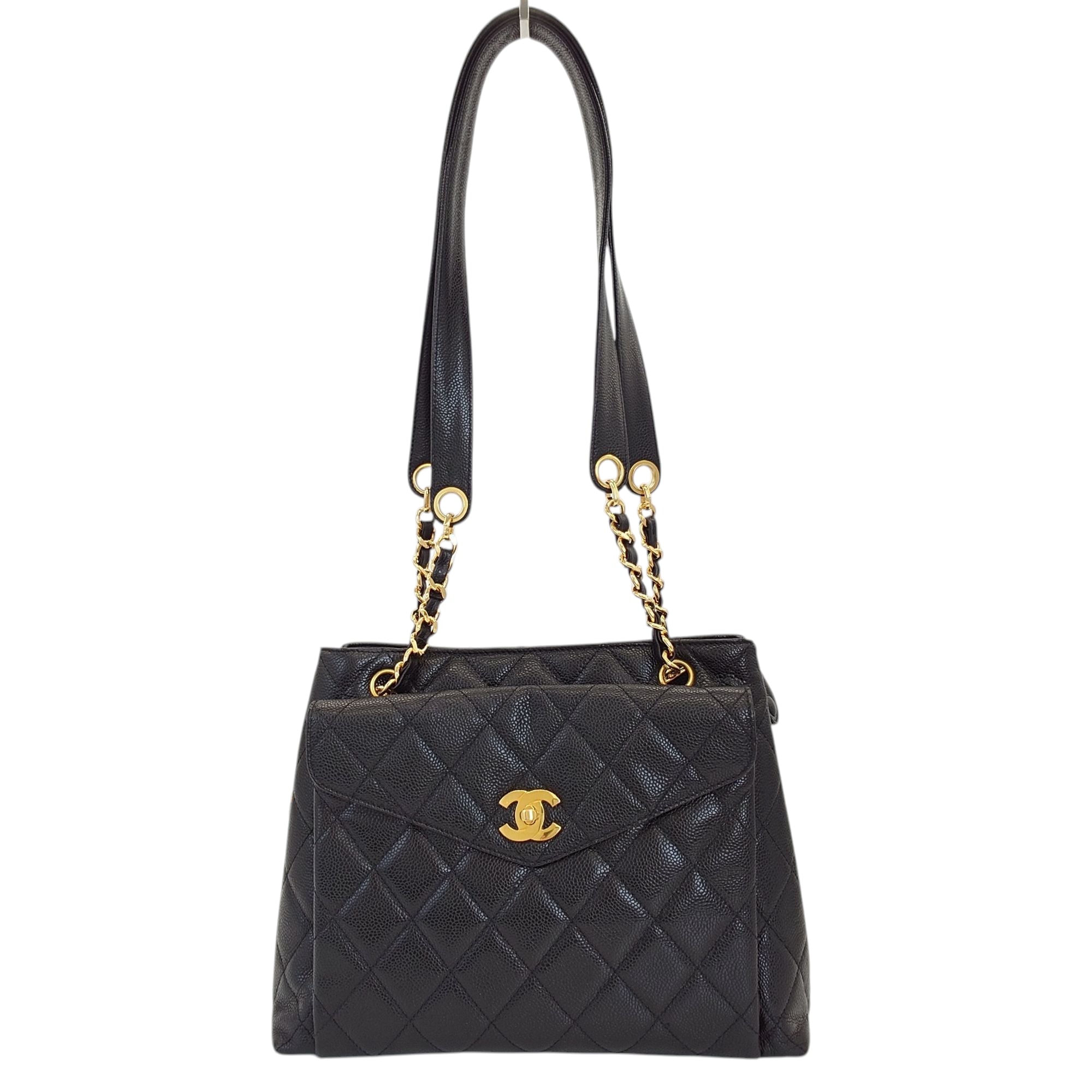 Used CHANEL シャネル マトラッセ チェーントートバッグ 4番台 ココマーク キャビアスキン ブラック ギャランティ・箱・保存袋付き 中古 / CHANEL Matelassé Chain Tote Bag 4-Series Coco Mark Caviar Skin Black with Authenticity Card, Box & Dust Bag