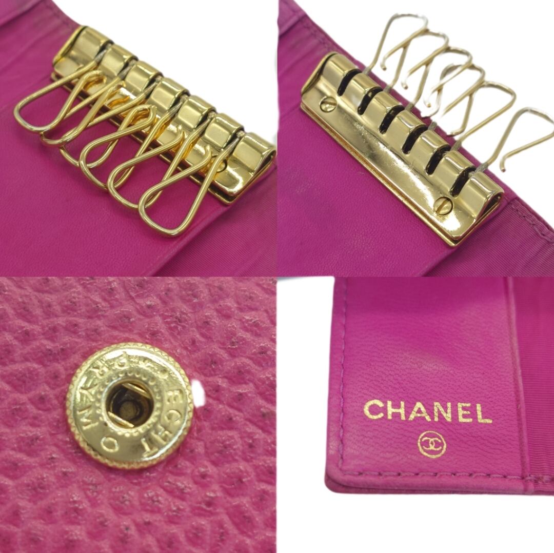Used CHANEL シャネル 6連キーケース キャビアスキン ココマーク 3番台 A01439 ピンク系 6-Hook Key Case Caviar Skin Coco Mark 3-Series A01439 Pink