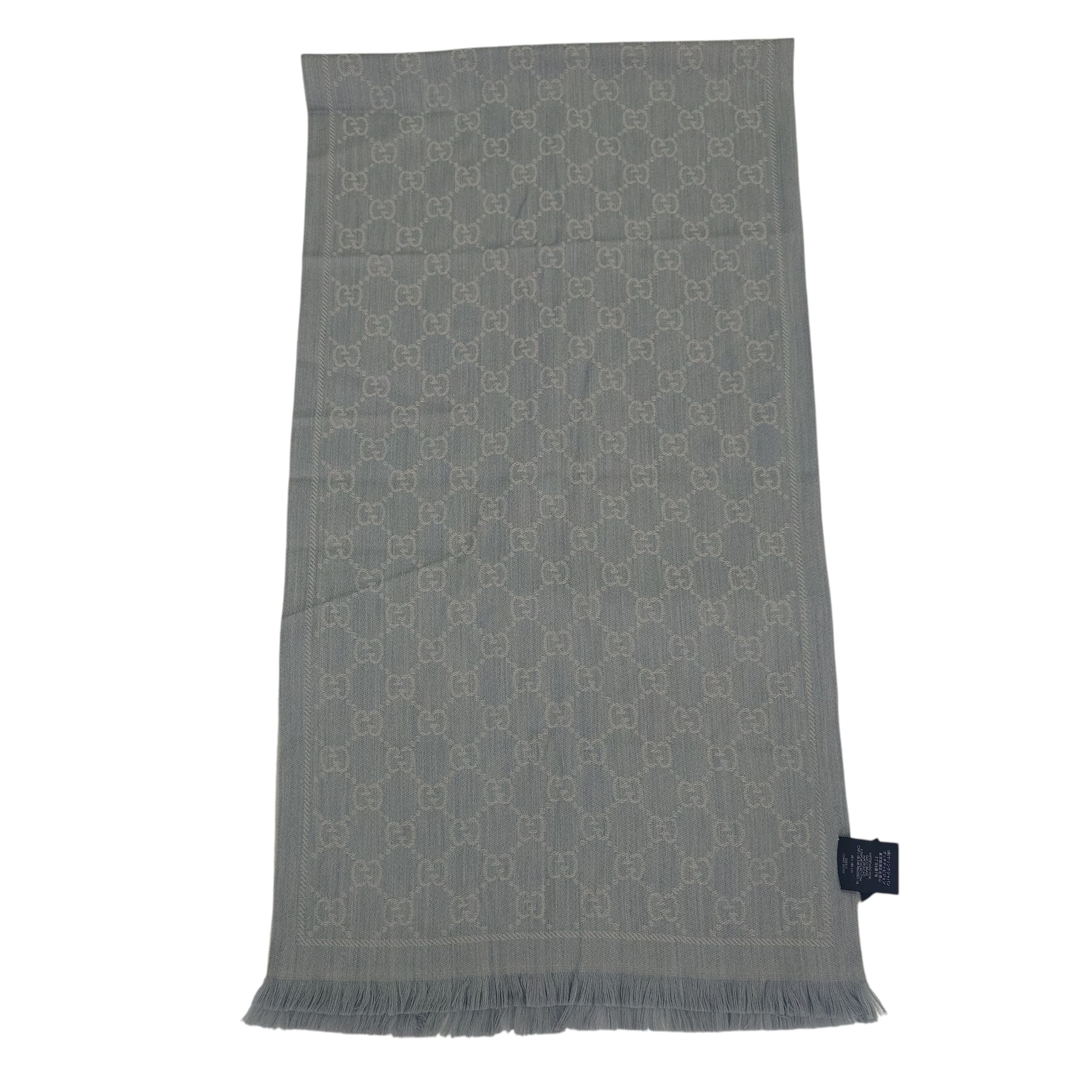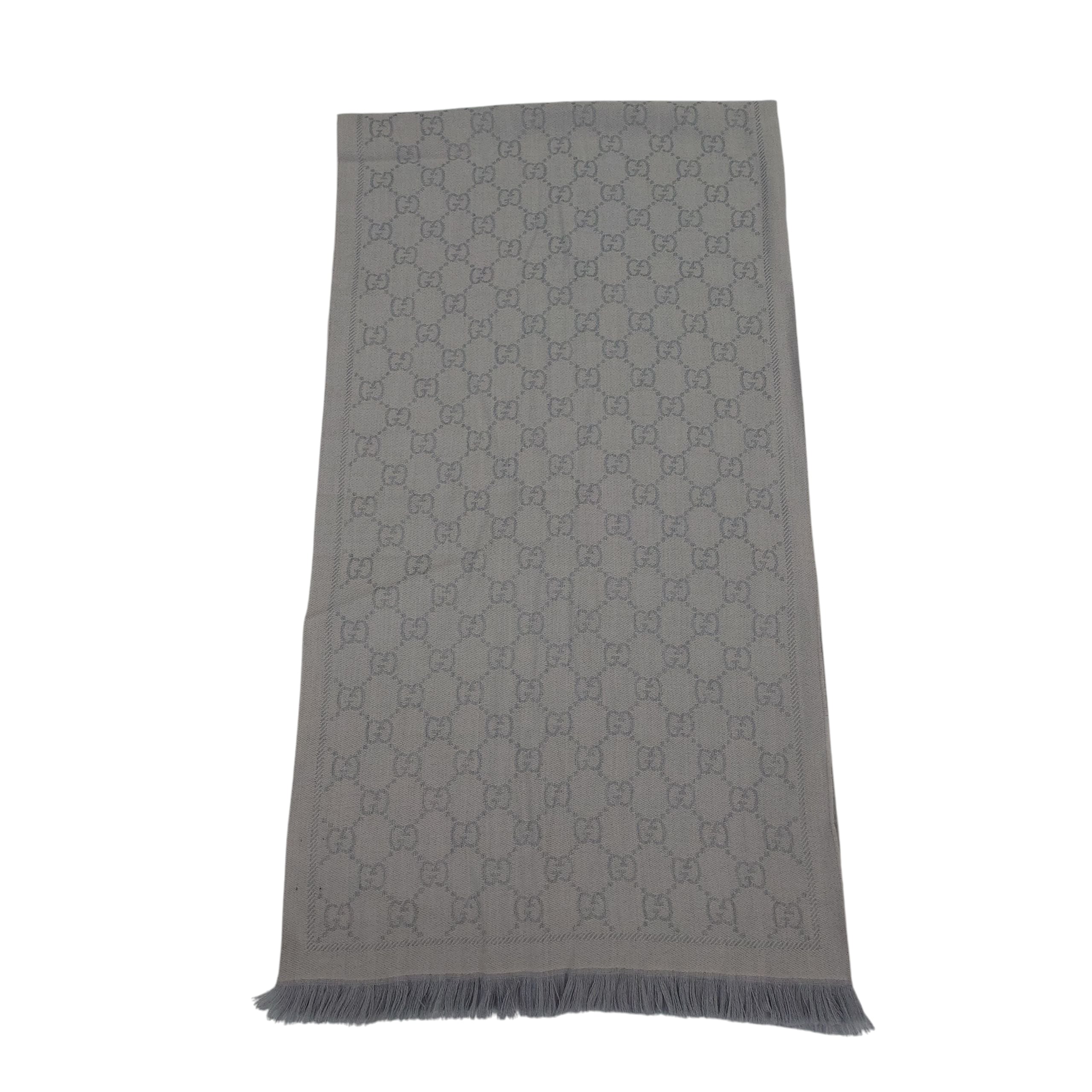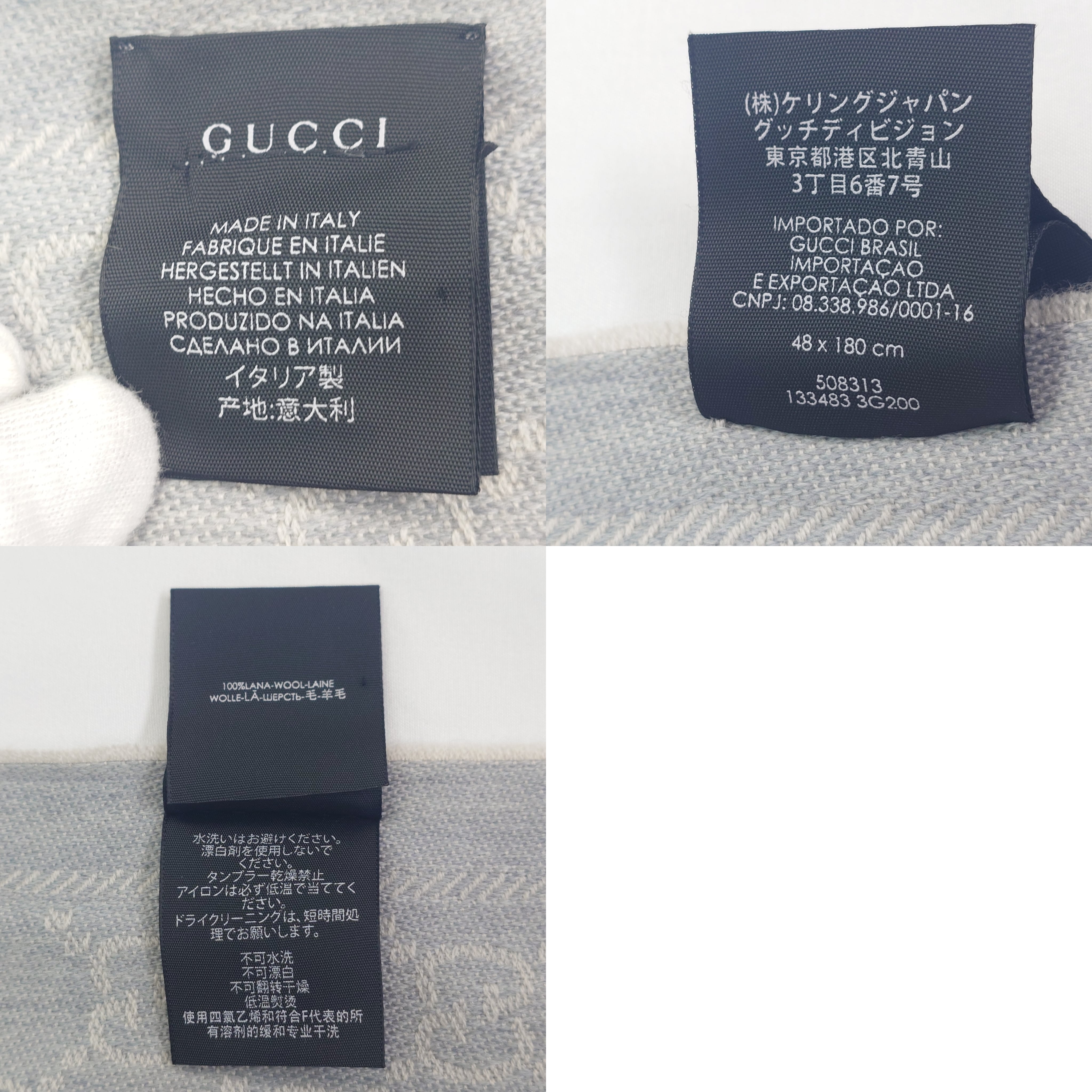 Used GUCCI グッチ マフラー ウール100% グレー 133483 3G200 箱付き ユニセックス / GUCCI Wool Scarf Gray 133483 3G200 with Box Unisex