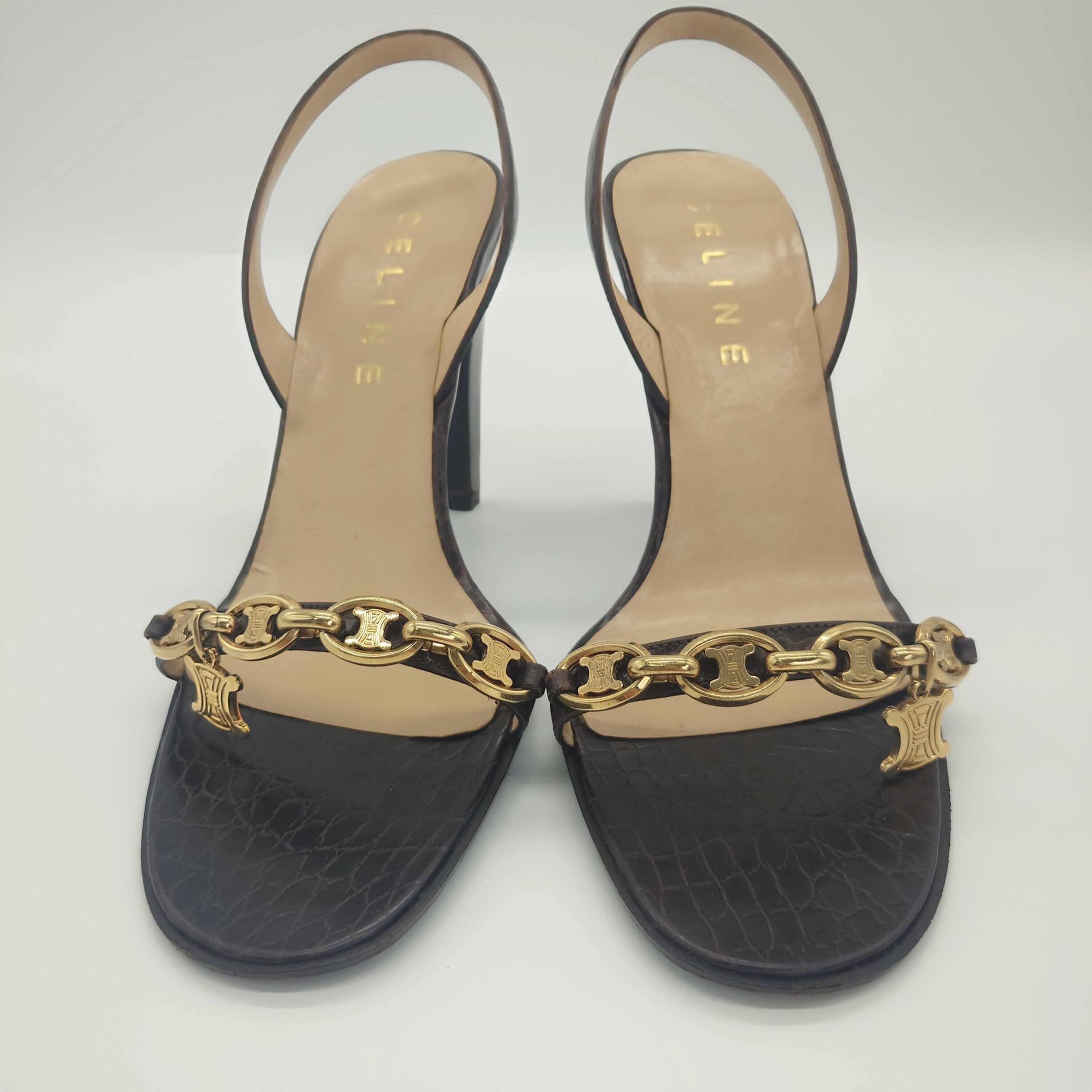 Used CELINE セリーヌ サンダル トリオンフ金具 ダークブラウン ゴールド 37サイズ イタリア製 箱付き / CELINE Sandals Triomphe Hardware Dark Brown Gold Size 37 Made in Italy with Box