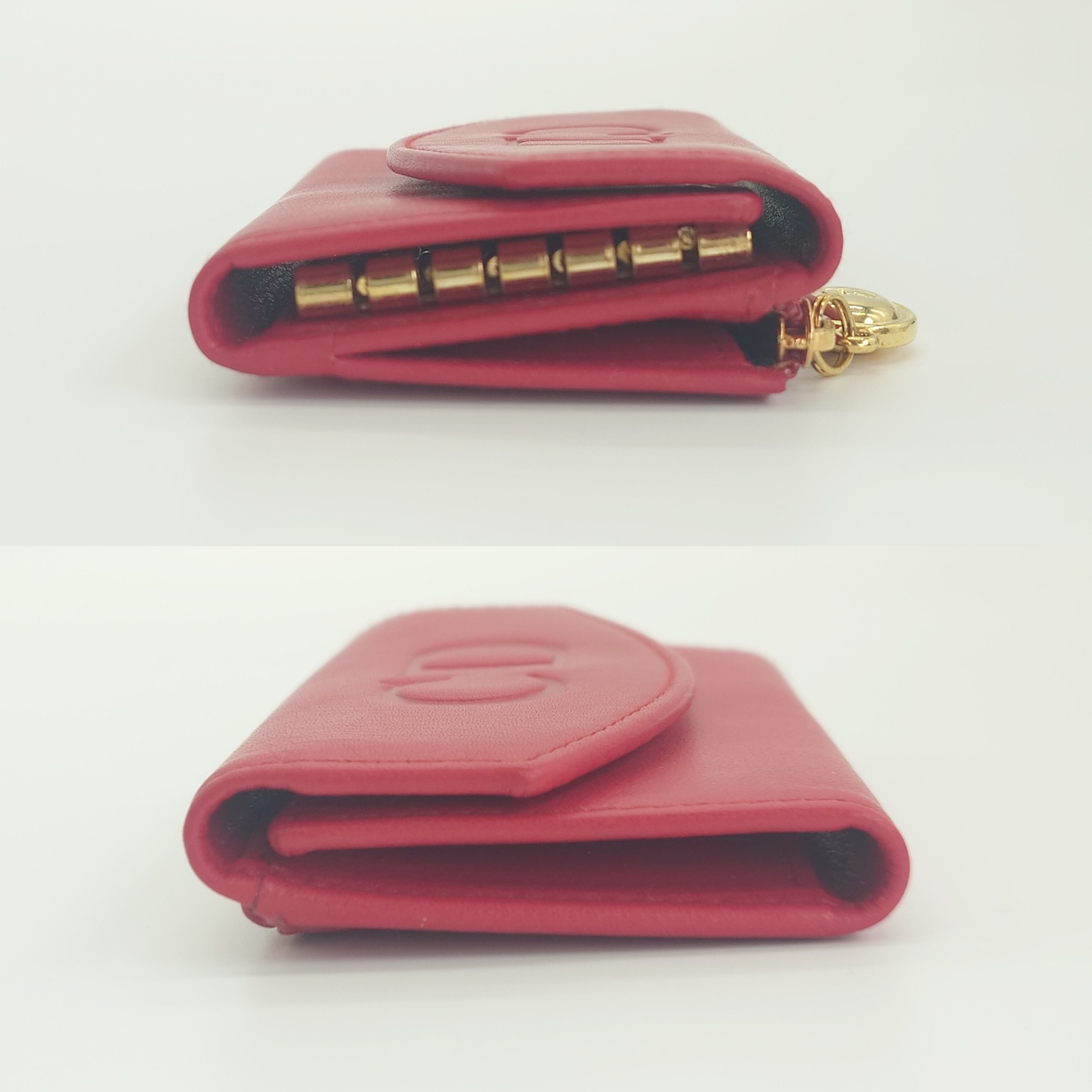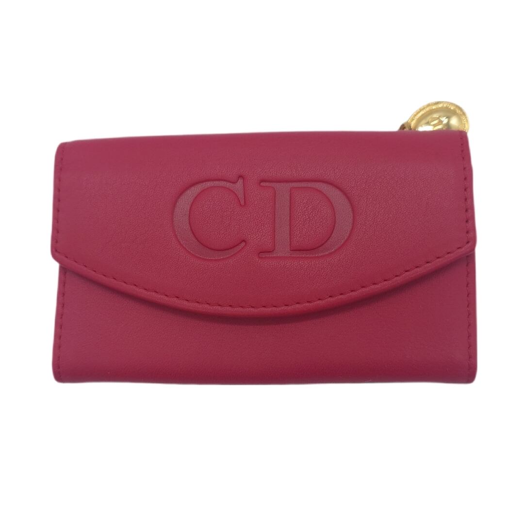 A vibrant red with gold hardware highlights the CD logo, creating a glamorous and feminine design. Compact and easy to carry, it fits perfectly in mini bags. Comes with a zipper pocket for added convenience.