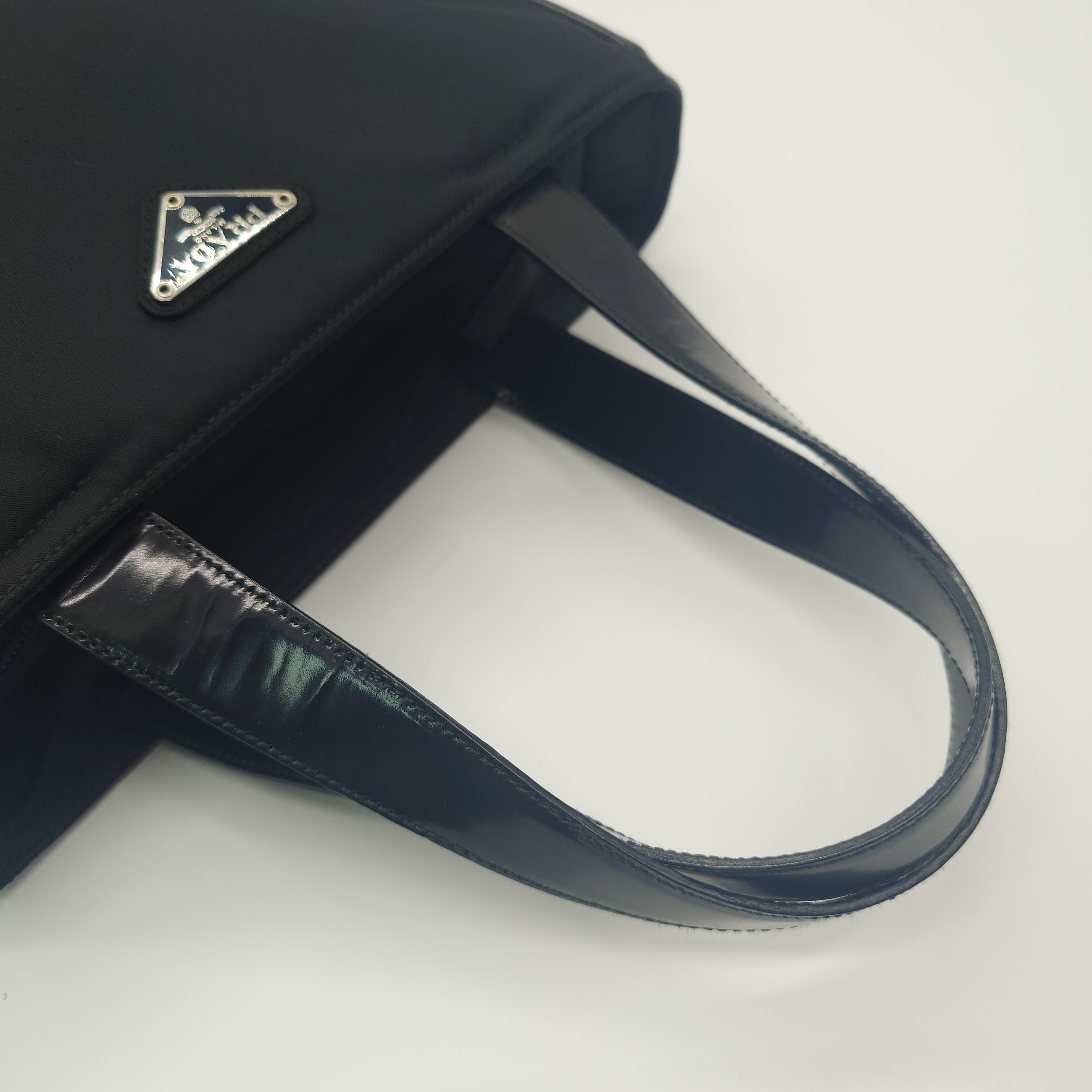 Used PRADA プラダ テスート ハンドバッグ 三角ロゴプレート ナイロン レザー ブラック PRADA Tessuto Handbag Triangle Logo Plate Nylon Leather Black