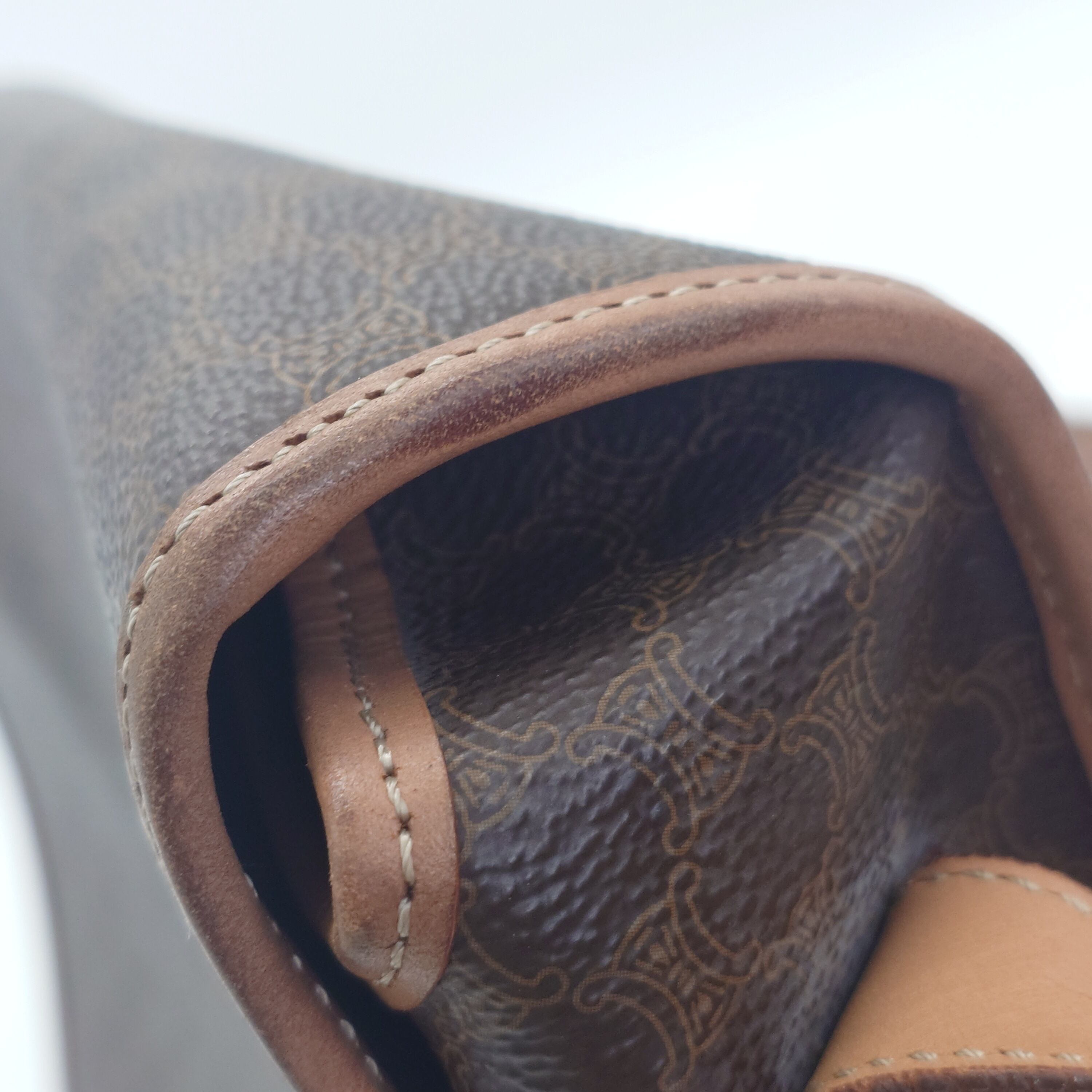 Used CELINE セリーヌ マカダム ショルダーバッグ トリオンフ柄 PVC レザー ブラウン ヴィンテージ CELINE Macadam Shoulder Bag Triomphe Pattern PVC Leather Brown Vintage
