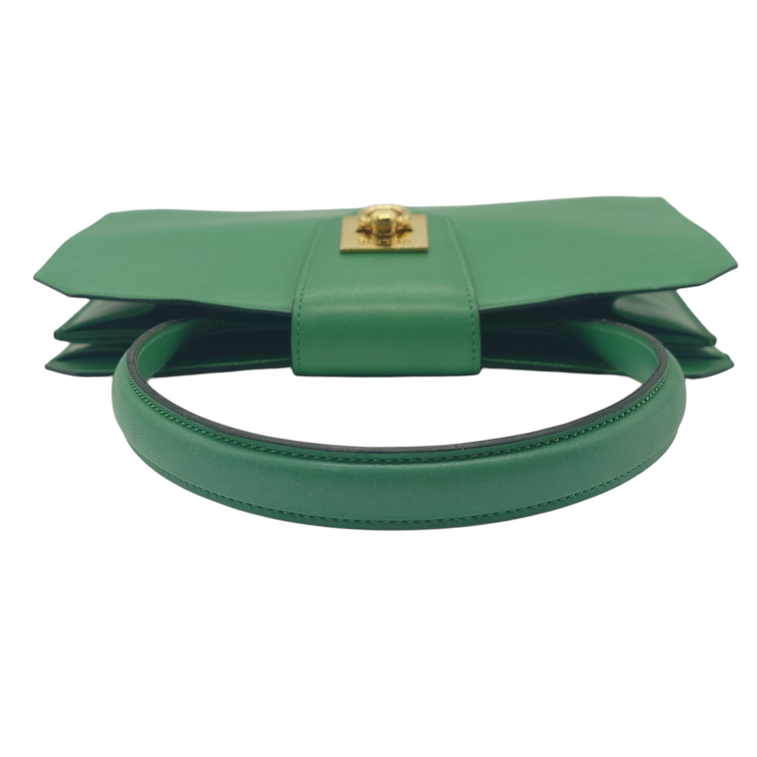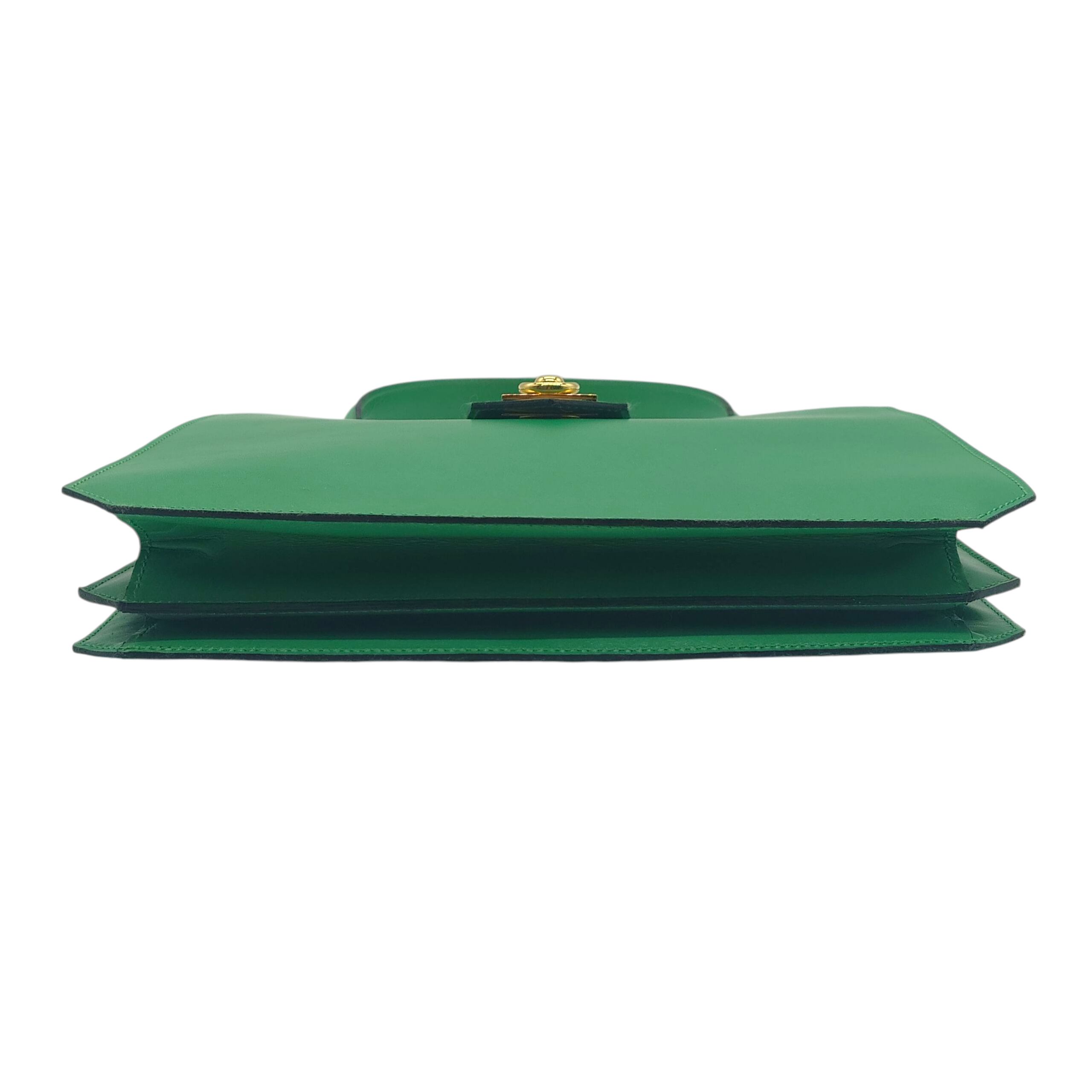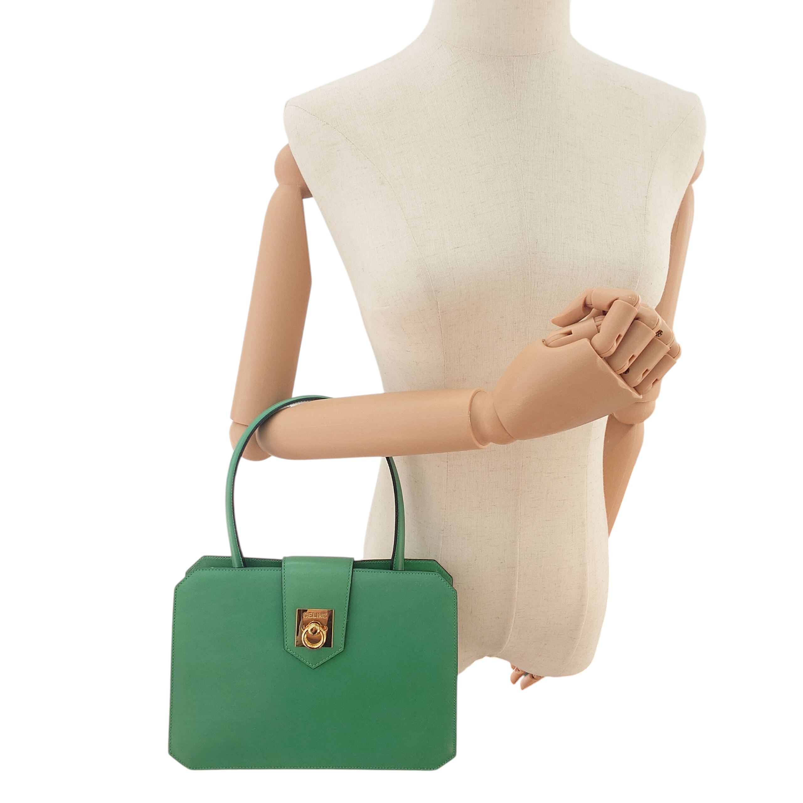 Used CELINE セリーヌ ハンドバッグ グリーン レザー ヴィンテージ 金具ロゴ 希少 イタリア製 CELINE Handbag Green Leather Vintage Logo Hardware Rare Made in Italy