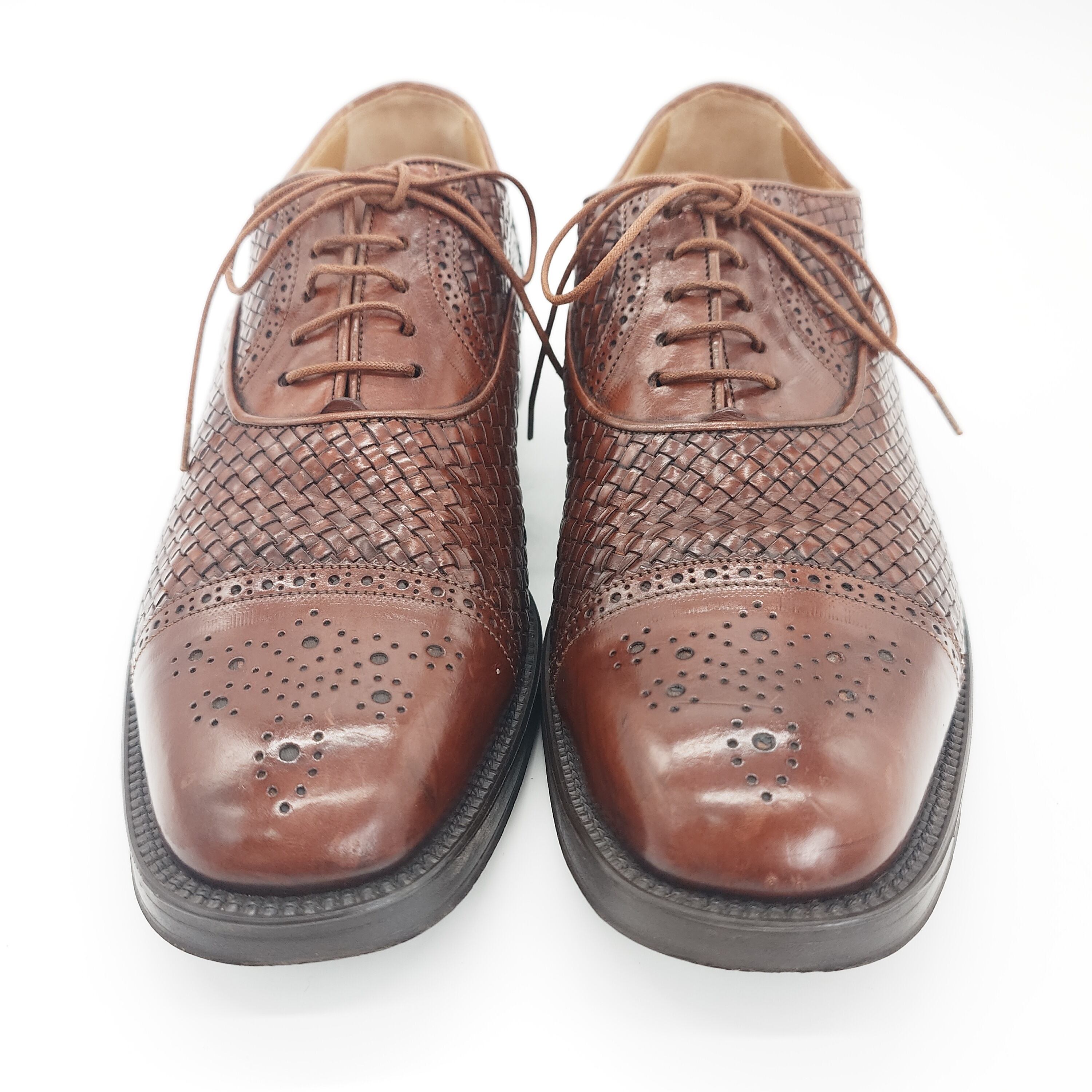 Used Santoni サントーニ 編み込み レザー ドレスシューズ メンズ 7 ブラウン / Woven Leather Dress Shoes Men’s Size 7