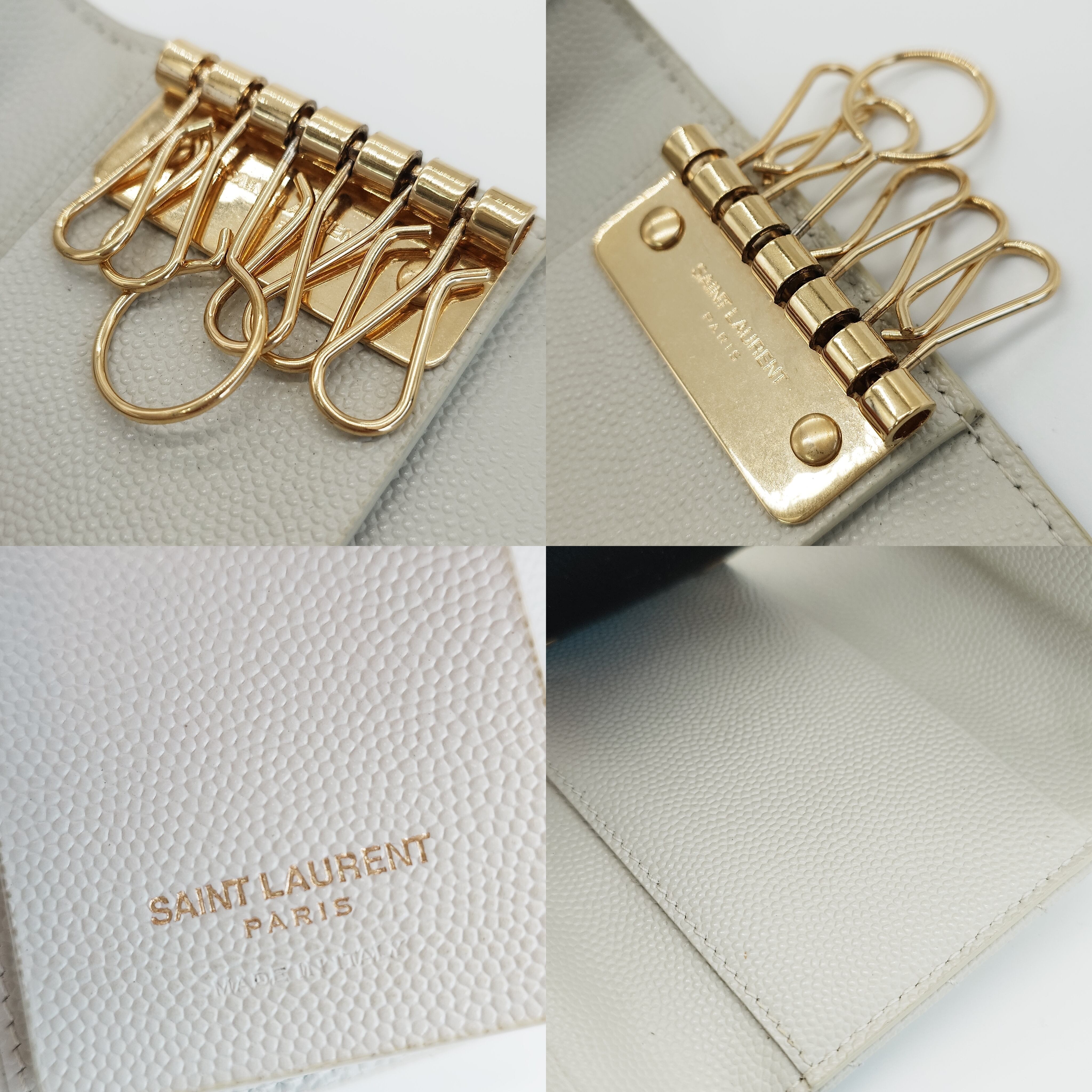 SAINT LAURENT PARIS サンローラン Used YSLロゴ レザー キーケース 6連 ホワイト Saint Laurent Paris YSL Logo Leather Key Case 6 Hooks White