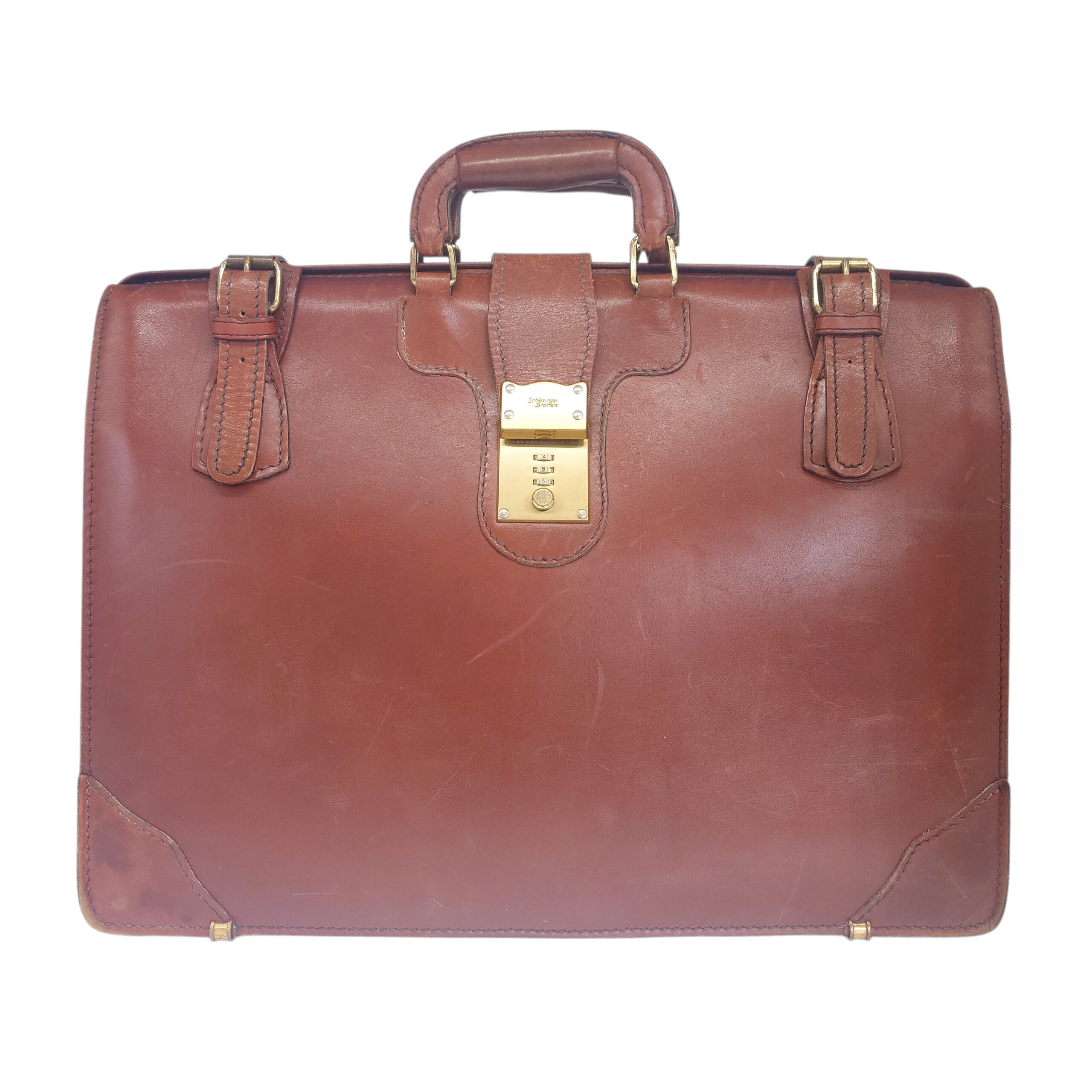 Used ヴィンテージ Schlesinger Brothers レザー ブリーフケース ブラウン ダイヤルロック式